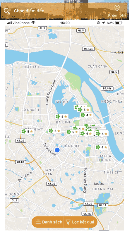 Bạn cũng có thể nhấn vào “Khám phá” để tìm địa điểm khách sạn nhanh hơn xung quanh bạn